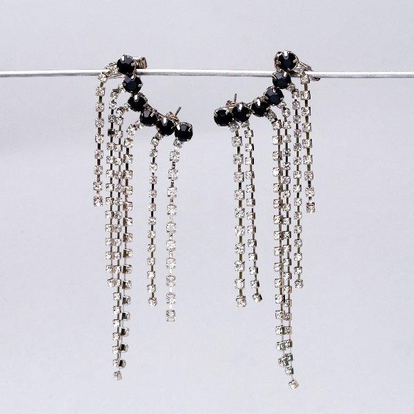 Diseñados para iluminar cada movimiento, los aros Isabel combinan elegancia y dramatismo en una silueta cascada. Realizados sobre una base de bronce con baño oro, llevan cristales checos en tonos cristal y negro, que aportan un brillo sofisticado y atemporal.