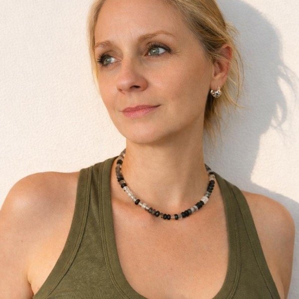 Choker de 40cm pegado al cuello . Con ágatas naturales en tonos grises. Cierre cajón de plata 925